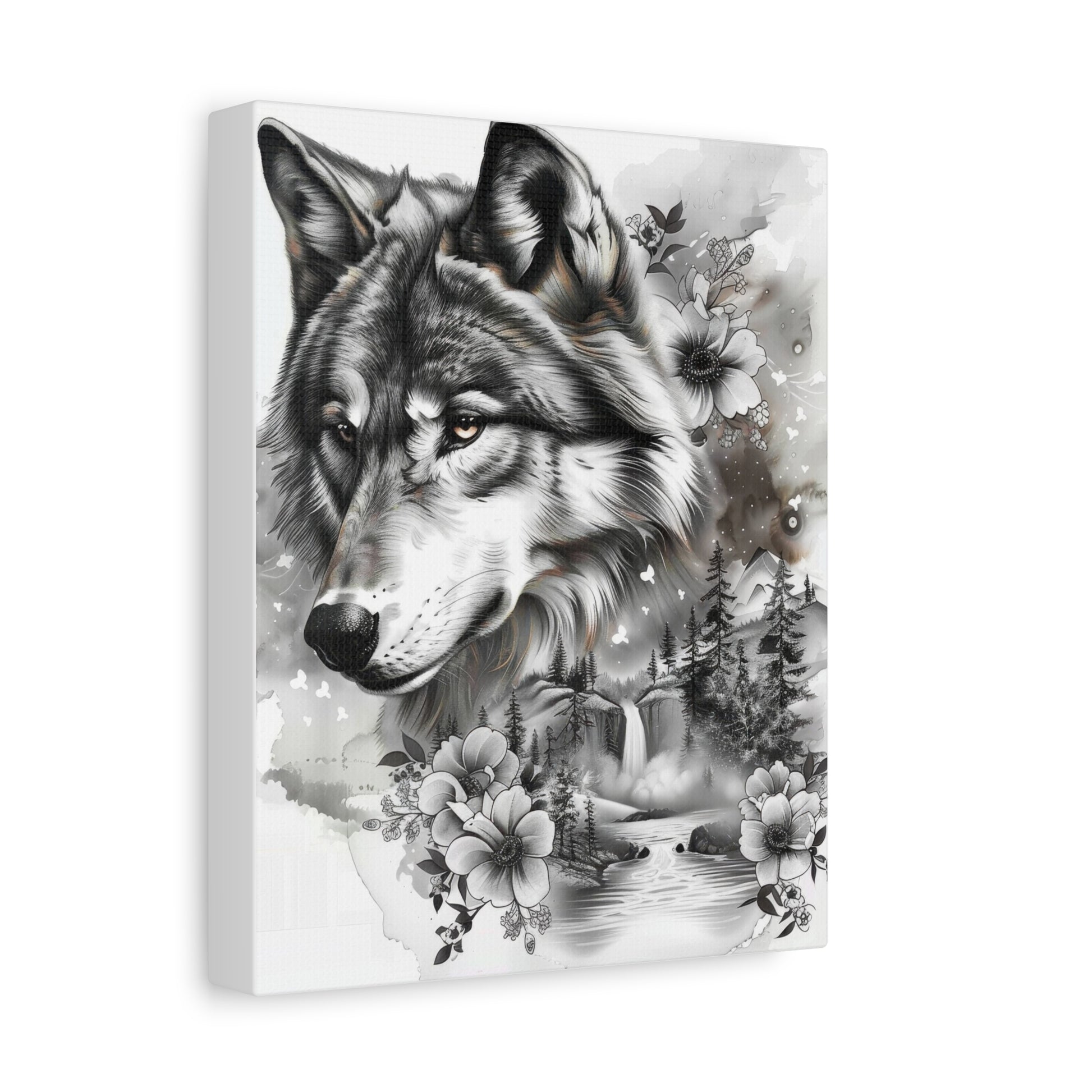 Monochrome Wolf Canvas Wall Art – Majestic Grey Forest Portrait on Stretched Matte Canvas